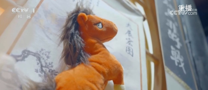 绒挂画的底色画布保留了仿古国画风格,上有“大展宏图”“马到成功”的书法题词,主角“骏马”则做成了可拆卸的毛绒马。这款国画里“长”出来的毛绒马,既有传统国画的雅致,又有别于普通的毛绒玩具,让游客爱不释手。