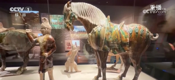 河南博物院文博助理馆员王琢介绍,唐三彩马的色彩非常丰富,它是以黄、绿、白三色为基底,并辅以蓝、褐等色彩融汇而成,彰显了大唐气象下一马当先、万马争先的精神图腾。
